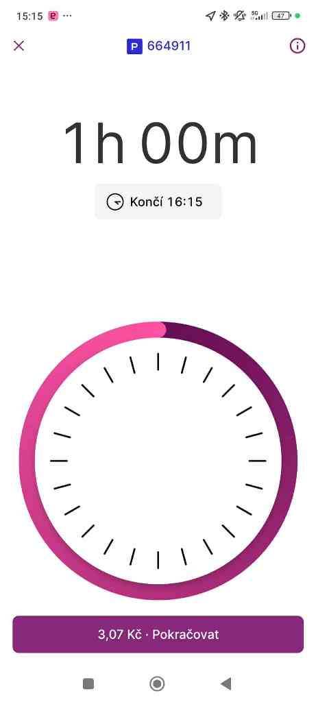 • Pokud aplikace získá od uživatele oprávnění k načítání pozice zařízení je zakoupení parkovacího lístku otázkou zápisu registrační značky parkovaného vozidla a výběru doby parkování.