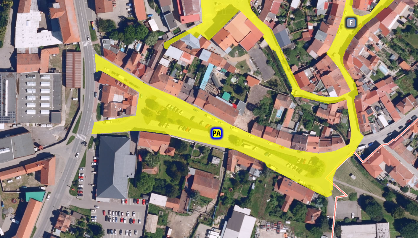 Zpoplatněnými úseky parkování jsou (v rozsahu grafické přílohy):